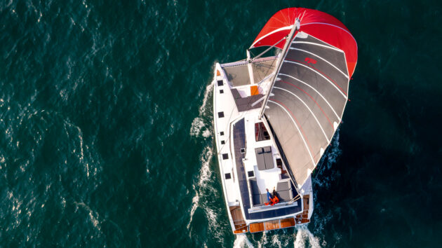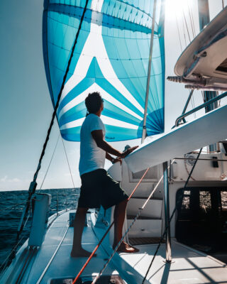 Cats sail downwind like a dream, so it’s time to embrace that. You’ll be especially thankful for your and your crew’s proficiency with the spinnaker or Code 0 when the winds soften and you have a long ocean passage ahead of you.