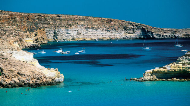 The Bay of Tabaccara in Lampedusa. Photo: Roberto Nistri/Alamy.
