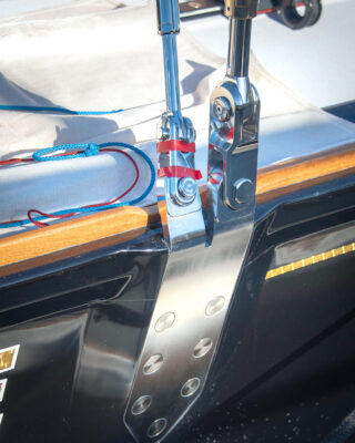 Keeping the chainplates in the original location, just inboard of the hull and stringers, would’ve led to much narrower spreaders and increased compression loads. So, the chainplates were moved aft to match the spreader sweep angle and attached on the outside of the hull just below the sheerline.