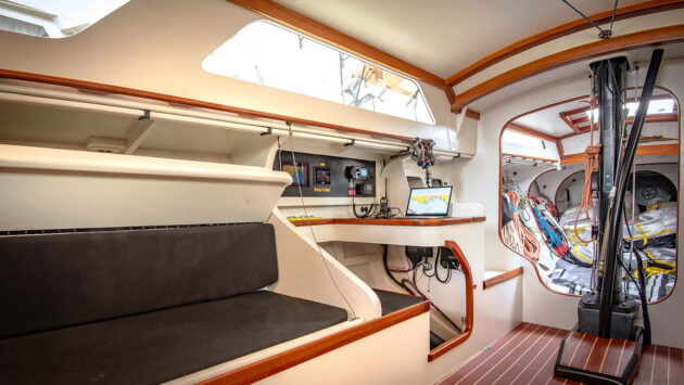 The mast step was rebuilt to fit the new mast, while the updated nav station now includes B&G instruments and Starlink communication. Photo: Steve Jost Photography