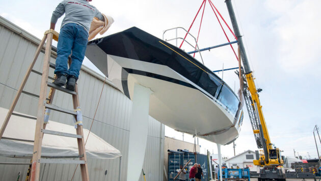 The plywood-built hull features hard chines that run its entire length. Photo: Steve Jost Photography