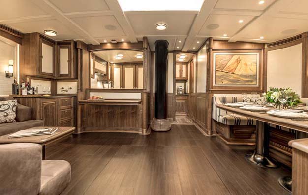 The intricate design details and the complex build skills required are particularly impressive when you consider the time frame in which Svea was completed. Normally an interior is built in parallel with the hull, but in this case it was built and fitted during the 14-month Vitters yard period.