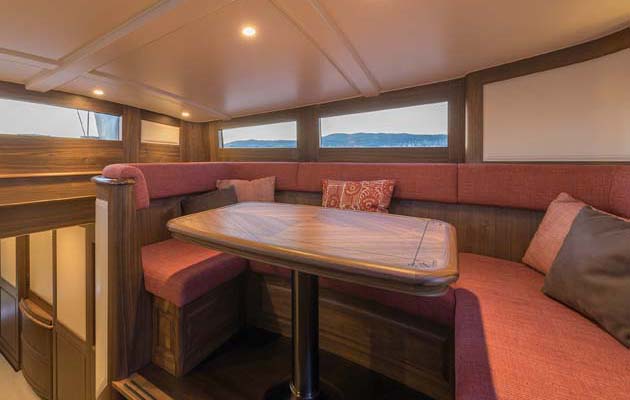 The cockpit also doubles as a guest area when the yacht is in cruise mode, and there is removable seating and table.
