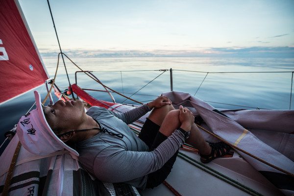 Leg 4, Melbourne to Hong Kong, day 08 on board Dongfeng. Drifting in the doldrums with no wind. Photo by Martin Keruzore/Volvo Ocean Race. 09 January, 2018.