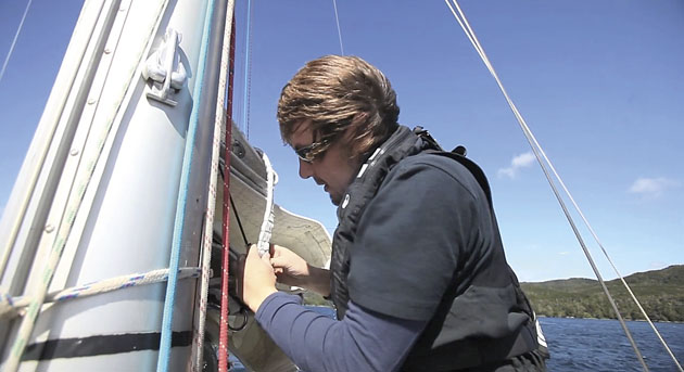 The ability to reduce sail area quickly is fundamental for storm sailing. Skip demonstrates what he regards as the only foolproof reefing method for a true offshore cruiser