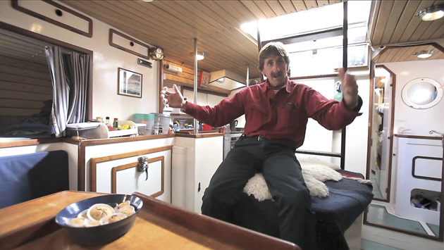 From the start we knew accommodation space would be compromised by expedition equipment. In any case, the tendency to push cabins well forward to increase the numbers aboard for extra income was not in our interests. It certainly wouldn’t have been in the interests of the unlucky sod who would have had to sleep there at sea. Consequently, a spacious walk-in forepeak begins just forward of the mast base and easily accommodates a workbench, our two inflatable boats, two outboards, spare ground tackle, expedition gear (dive or mountaineering equipment), plus room for fruit and veg in heavy-duty plastic boxes.