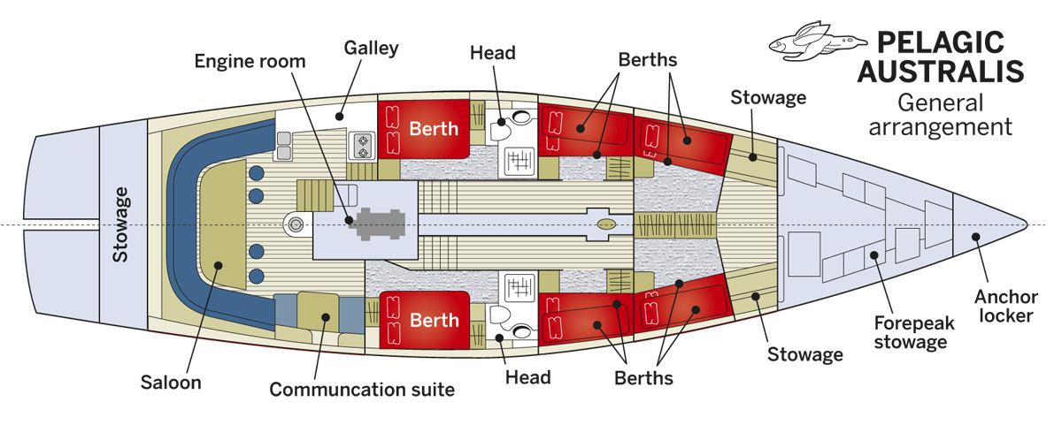 Only by being bolshy and knowing exactly the boat I wanted in order to achieve the same Pelagic-style of expedition cruising was I able to mitigate the added complications that go with a bigger vessel and are always encouraged by suppliers – no surprise there. When you have sorted out your propulsion unit, drive train, steering system, rig and reliable instruments (ours are from Raymarine) you can cast off – everything else is superfluous to the voyage.