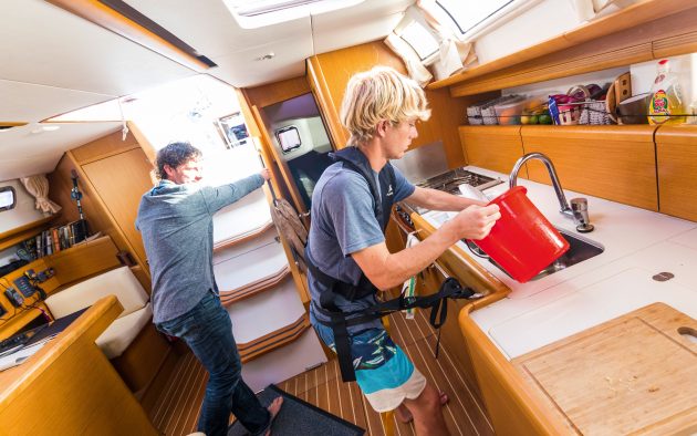 “The saltwater tap in the galley is essential,” thinks Tobias Gröpper on his Sunbeam 44 Pivot. “We still have 50% of our tank capacity on arrival although we took showers etc.”