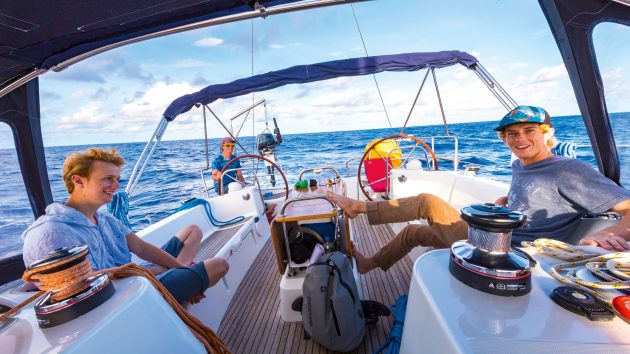 A ‘dads and lads’ crew on Wanderlust. To avoid conflict or confusion they created a boat handbook for the passage. Photo: WCC/James Mitchell