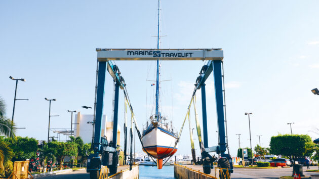 Luckily for us, a yard in Panama City had space to haul us out a few days later. We started a top-to-bottom, bow-to-stern rigging, bulkhead, and structural inspection. A hit that hard puts a tremendous amount of force on every part of the boat. We needed to make sure we found any damage and repaired it while on the hard before entrusting our lives to Agápe to cross the Pacific.