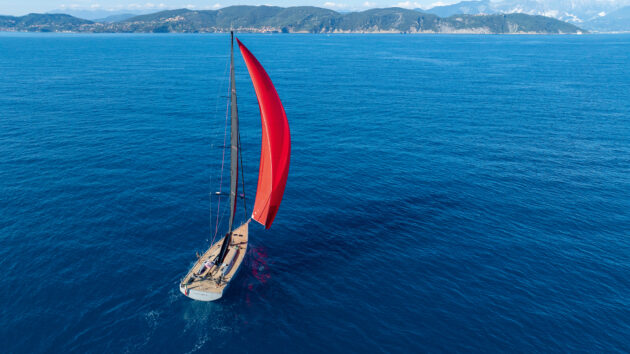 The RS line has all-carbon decks, which helps keep the 66’s displacement down to 26-tonnes, while hulls are infused glass-carbon sandwich, a hybrid blend to help offer some noise and vibration absorption. A glance up at the lofty rig will tell you this is a generously canvassed yacht, which should make the most of this type of fair weather, light wind sailing, while the stats from the performance ratios confirm this serious sail area allies with a lightweight, powerful hull.