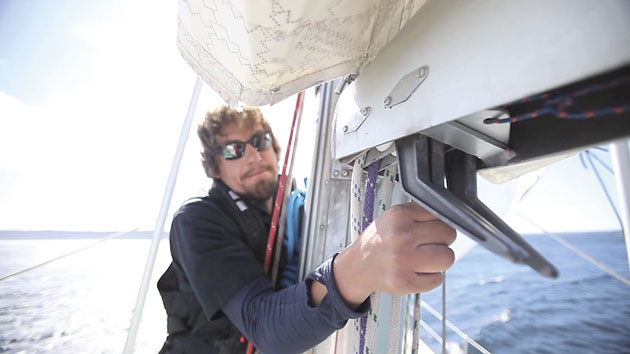 The ability to reduce sail area quickly is fundamental for storm sailing. Skip demonstrates what he regards as the only foolproof reefing method for a true offshore cruiser